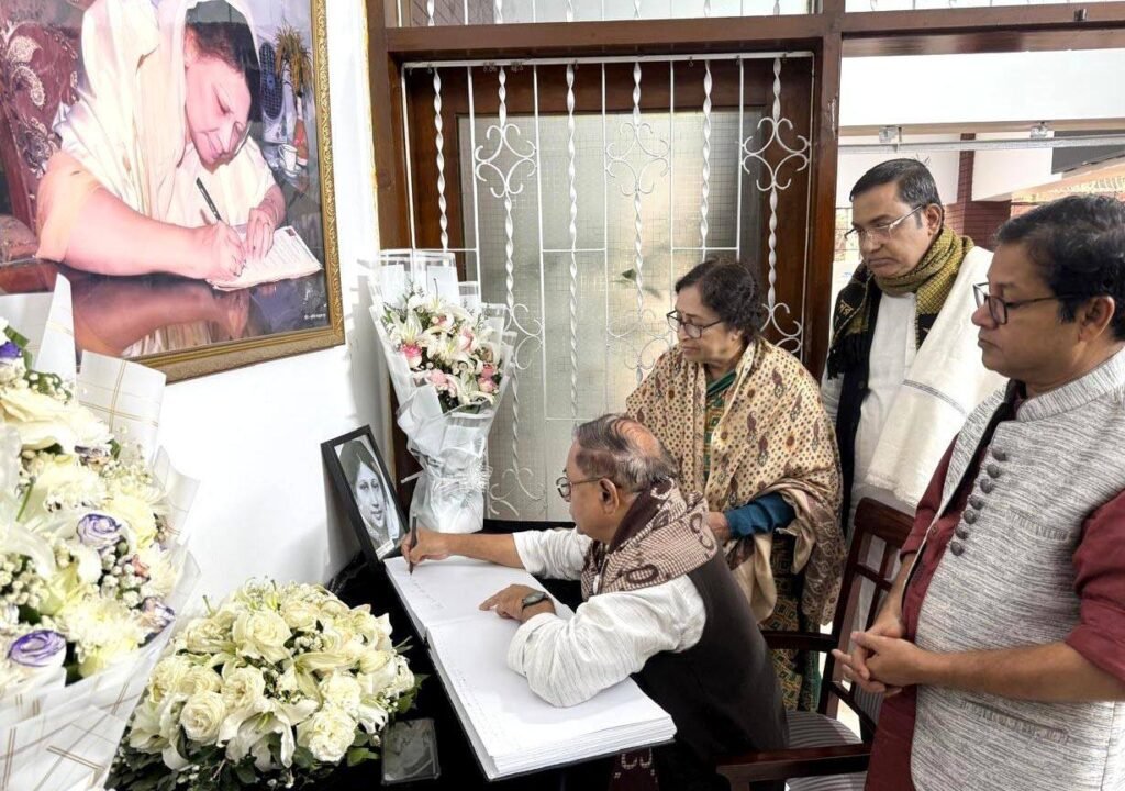 রোববার (৪ জানুয়ারি ২০২৬) দুপুরে রাজধানীর গুলশানে বিএনপি চেয়ারপারসনের কার্যালয়ে সাবেক প্রধানমন্ত্রী ও বিএনপি চেয়ারপারসন বেগম খালেদা জিয়ার স্মরণে দলের পক্ষ থেকে খোলা শোকবইয়ে স্বাক্ষর করেন বিপ্লবী ওয়ার্কার্স পার্টির সাধারণ সম্পাদক সাইফুল হক।