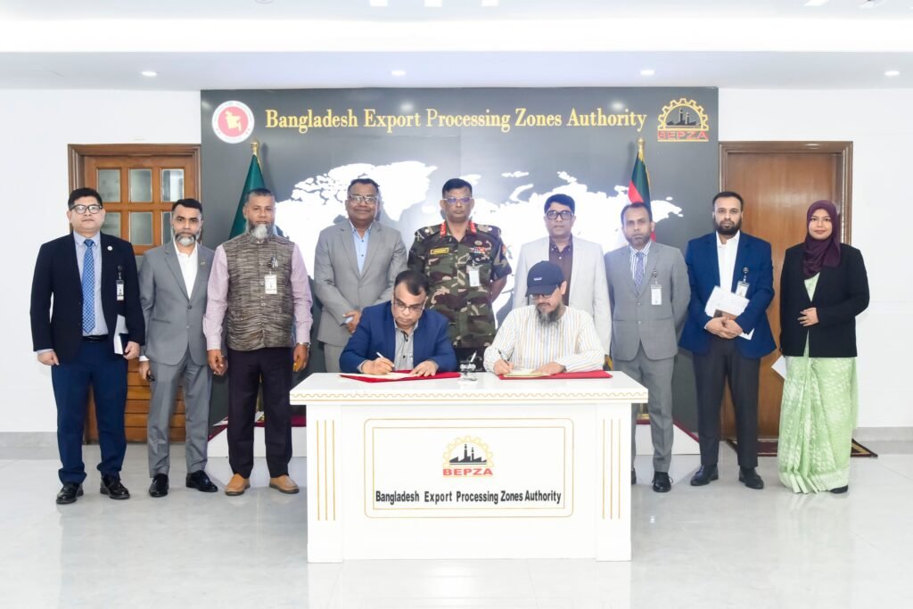 চট্টগ্রামের মিরসরাইয়ে অবস্থিত বেপজা ইকোনমিক জোনে (BEPZA EZ) উচ্চমানের পোশাক উৎপাদন কারখানা স্থাপন করতে যাচ্ছে চীনের প্রতিষ্ঠান October4128 (BD) Ltd.। এ লক্ষ্যে আজ বৃহস্পতিবার (১৬ অক্টোবর, ২০২৫) বাংলাদেশ এক্সপোর্ট প্রসেসিং জোনস অথরিটি (BEPZA) এবং কোম্পানিটির মধ্যে একটি চুক্তি স্বাক্ষরিত হয়েছে।
