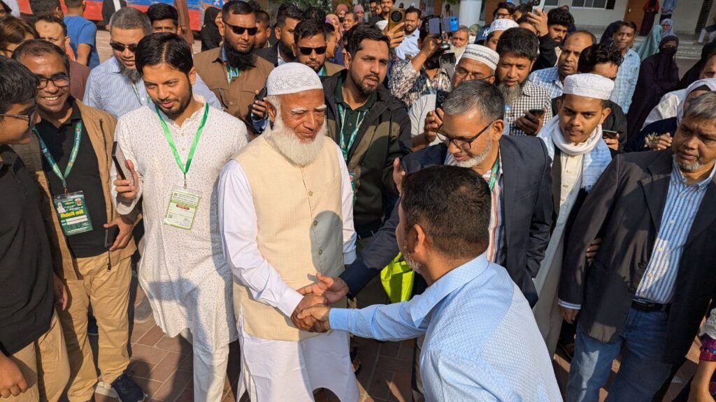 ভোট প্রদান শেষে আমীরে জামায়াত উপস্থিত ভোটারদের সঙ্গে কুশল বিনিময় করেন এবং নির্বাচনের সার্বিক পরিবেশ সম্পর্কে খোঁজখবর নেন। পরে তিনি কেন্দ্র প্রাঙ্গণে সাংবাদিকদের সঙ্গে কথা বলেন।