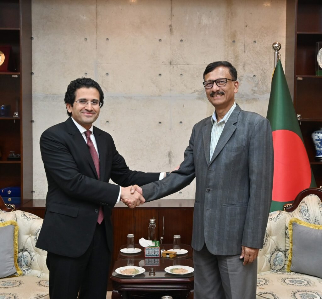 পাকিস্তানের পেট্রোলিয়াম মন্ত্রী জনাব আলী পারভেজ মালিক আজ পররাষ্ট্র মন্ত্রণালয়ে বাংলাদেশের পররাষ্ট্র উপদেষ্টা জনাব মোঃ তৌহিদ হোসেনের সাথে সৌজন্য সাক্ষাৎ করেছেন। সোমবার (২৭ অক্টোবর ২০২৫) ঢাকায় অনুষ্ঠিত বাংলাদেশ-পাকিস্তান যৌথ অর্থনৈতিক কমিশন (জেইসি) এর নবম বৈঠকে পাকিস্তানের প্রতিনিধিদলের নেতৃত্ব দিয়ে পাকিস্তানের মন্ত্রী তিন দিনের সরকারি সফরে বাংলাদেশে এসেছেন।