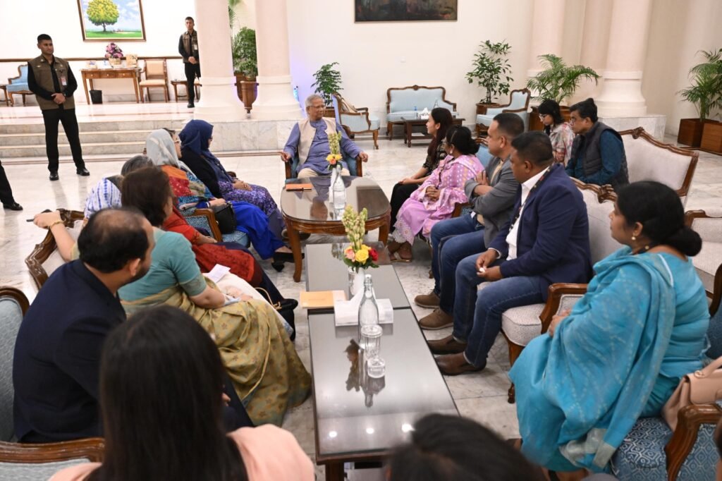 ‘বেগম রোকেয়া পদক ২০২৫’ জয়ীদের সংবর্ধনা দিয়েছেন প্রধান উপদেষ্টা প্রফেসর মুহাম্মদ ইউনূস। শনিবার (১৩ ডিসেম্বর ২০২৫) সন্ধ্যায় রাষ্ট্রীয় অতিথি ভবন যমুনায় উপস্থিত ছিলেন এ বছর রোকেয়া পদকপ্রাপ্ত রুবহানা রাকিব, নাবিলা ইদ্রিস, কল্পনা আক্তার ও ঋতুপর্ণা চাকমা।
